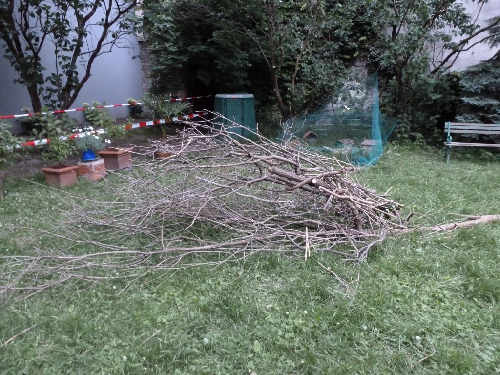 das meiste Schnittgut habe ich bereits eintsorgt, jetzt sind nur mehr ein paar trockene Äste übrig.
