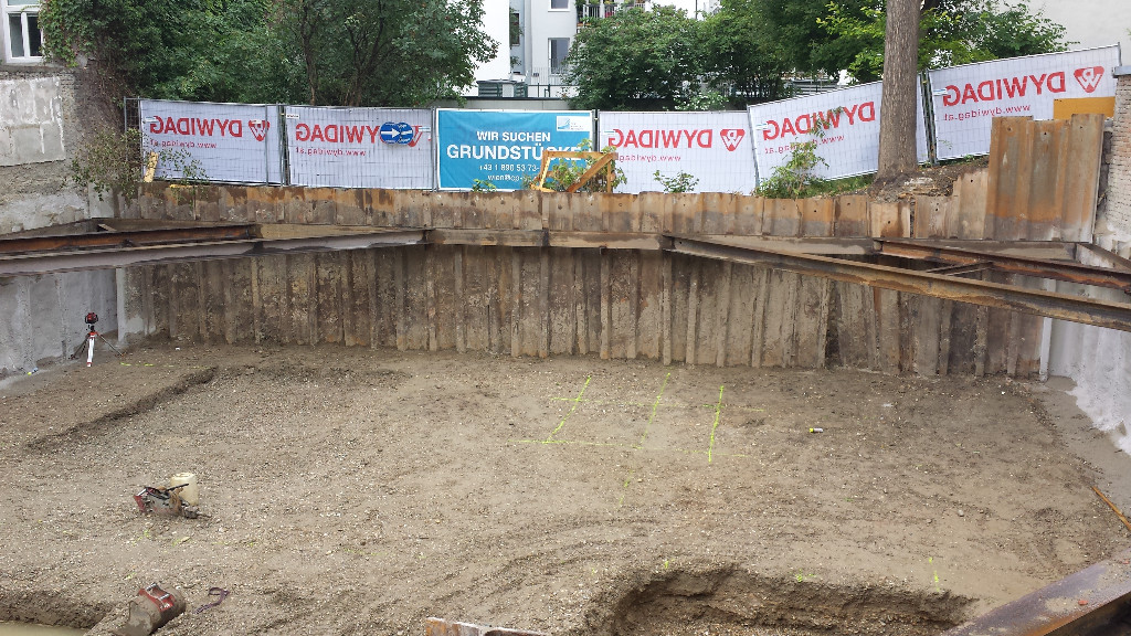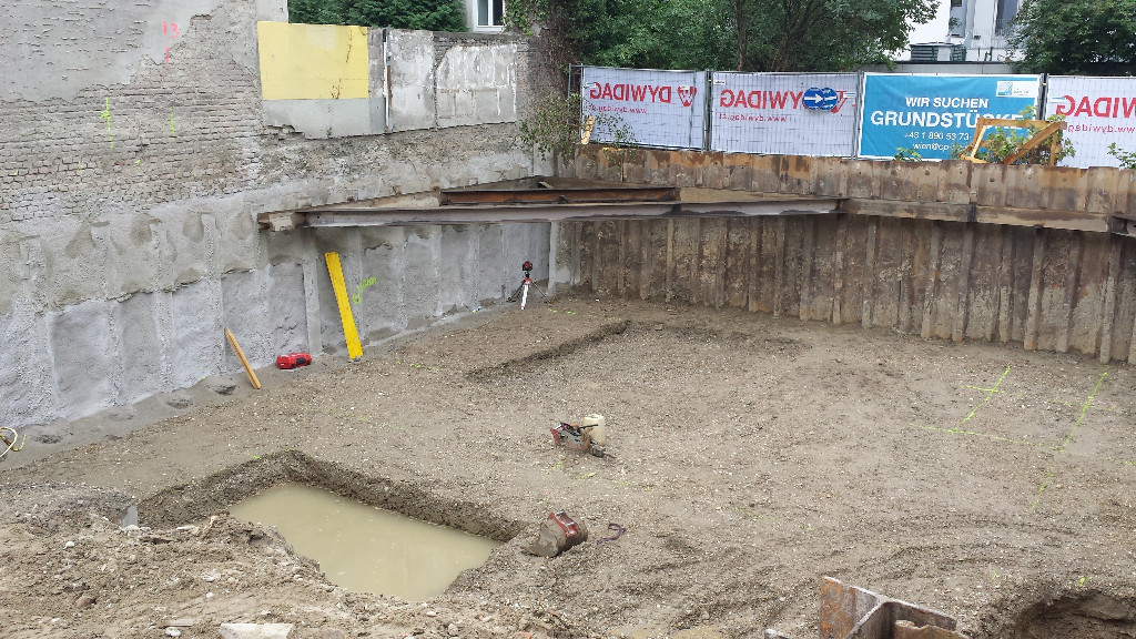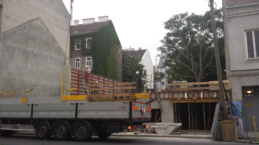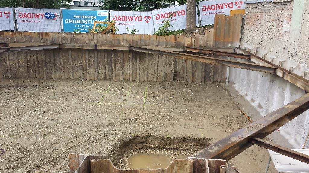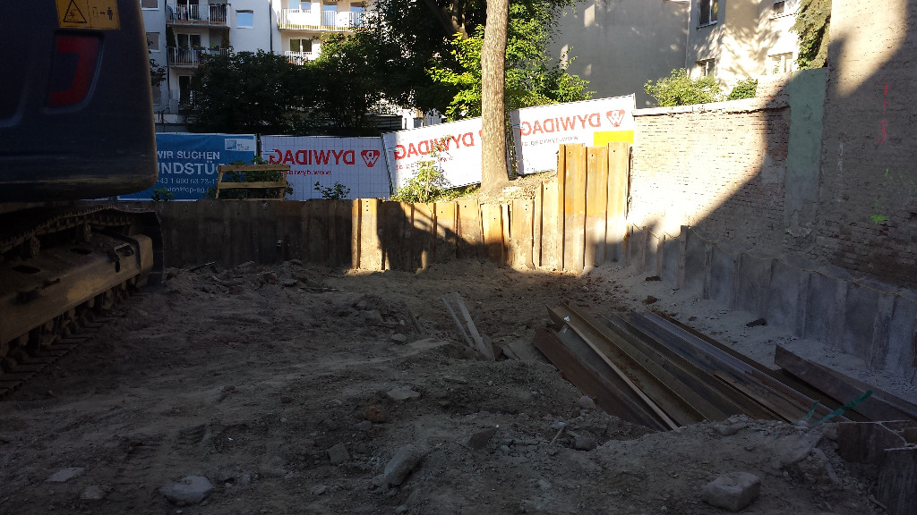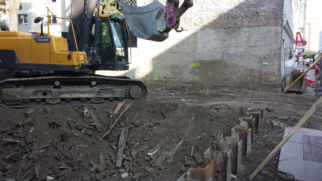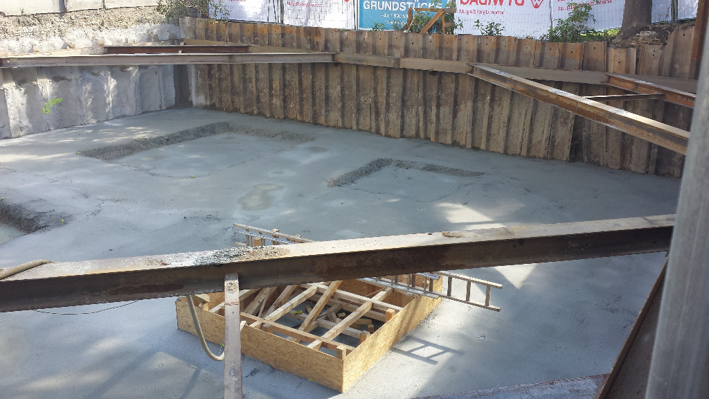 Sie habe begonnen das Fundament aus zu heben, dabei kam eine hydraulische Ramme zum Einsatz, welche Stahlträger und Platten in den Boden versenkt hat, die Teile gehen sicher 10 Meter (oder mehr) in den Boden. Das Fundament ist auch schon betoniert und ein Kran wurde aufgestellt.