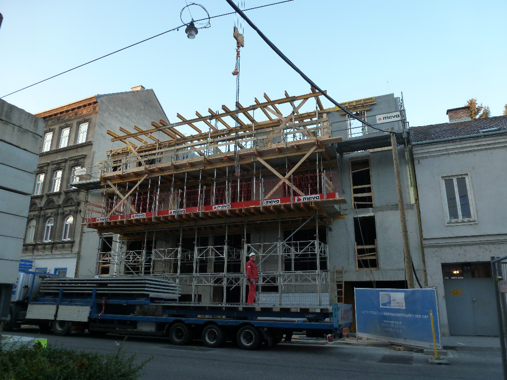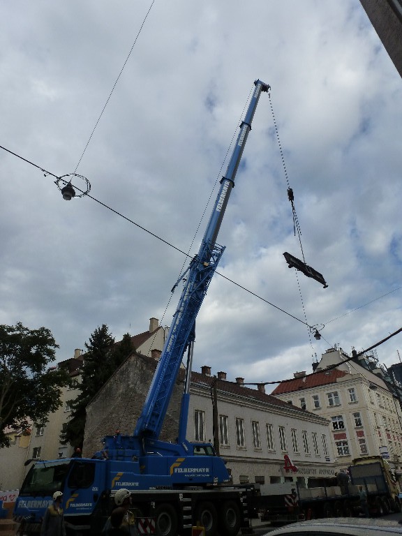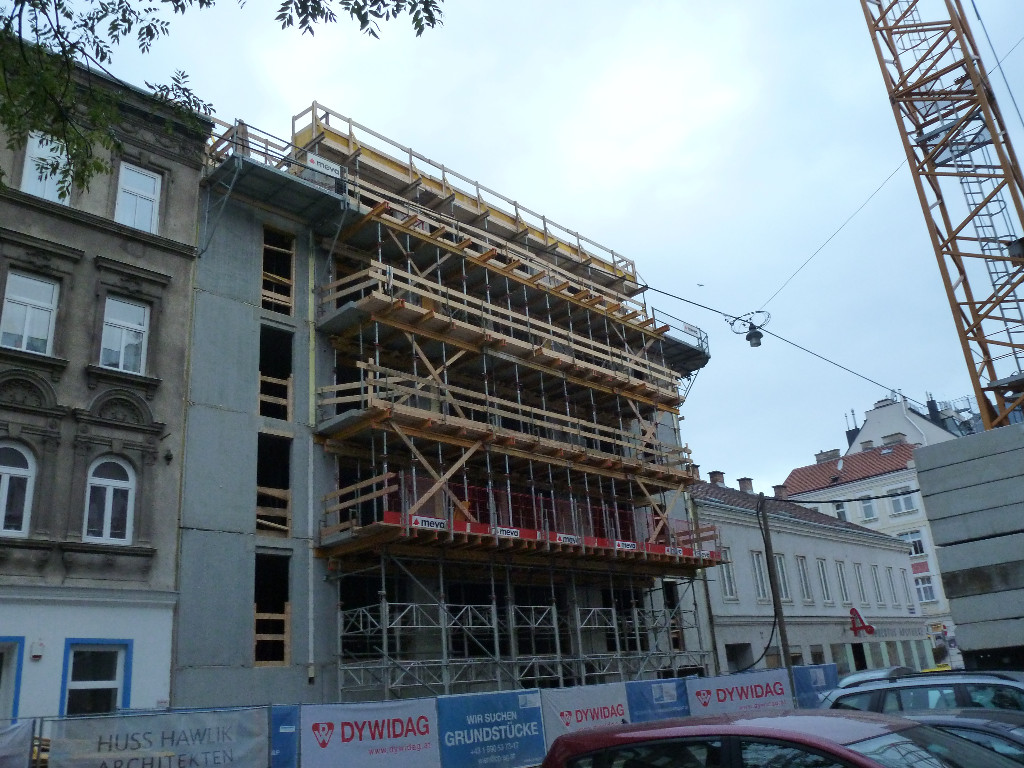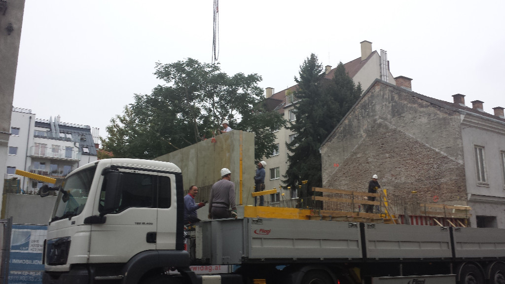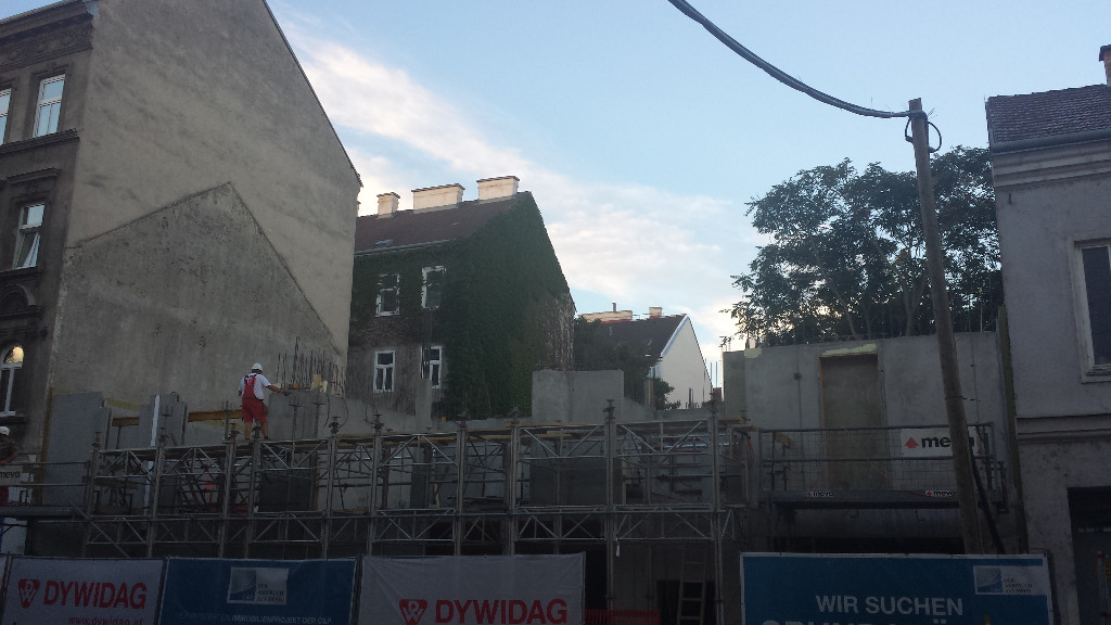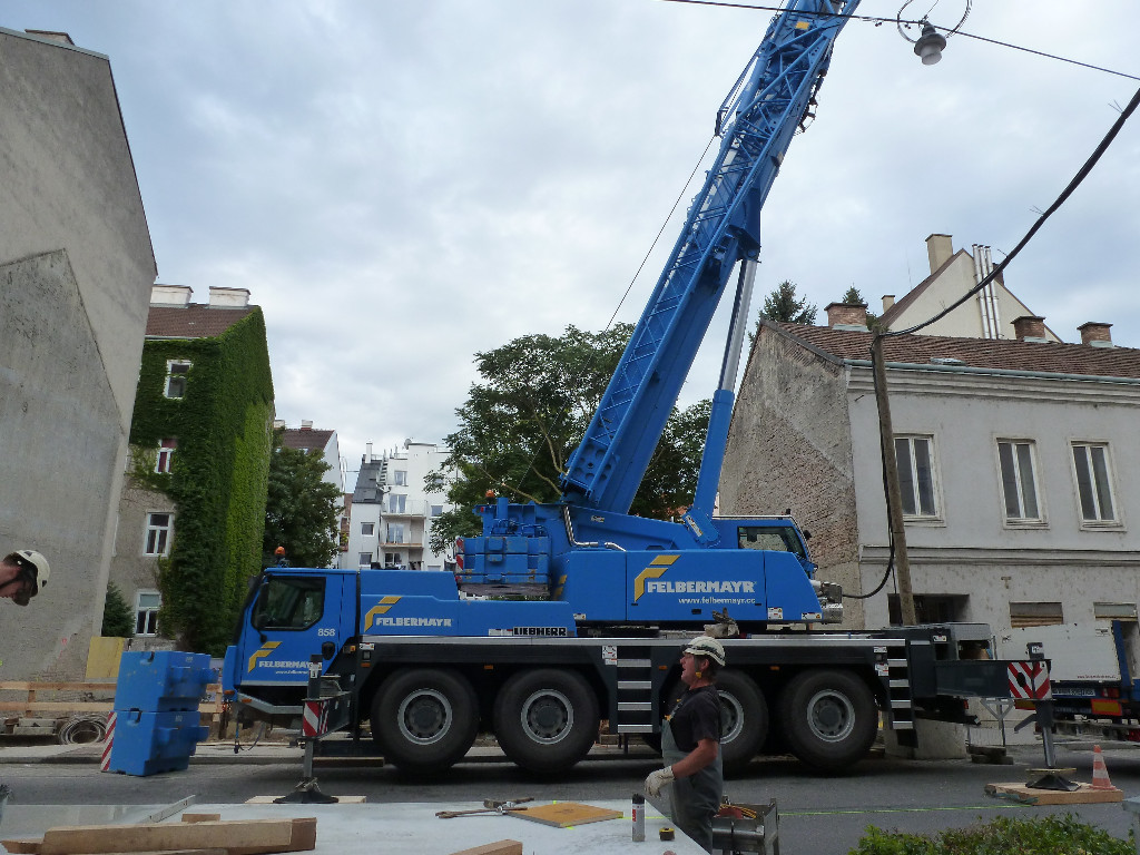 Sie habe begonnen das Fundament aus zu heben, dabei kam eine hydraulische Ramme zum Einsatz, welche Stahlträger und Platten in den Boden versenkt hat, die Teile gehen sicher 10 Meter (oder mehr) in den Boden. Das Fundament ist auch schon betoniert und ein Kran wurde aufgestellt.