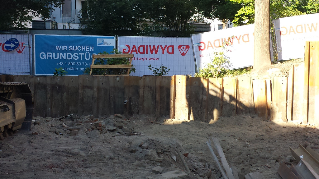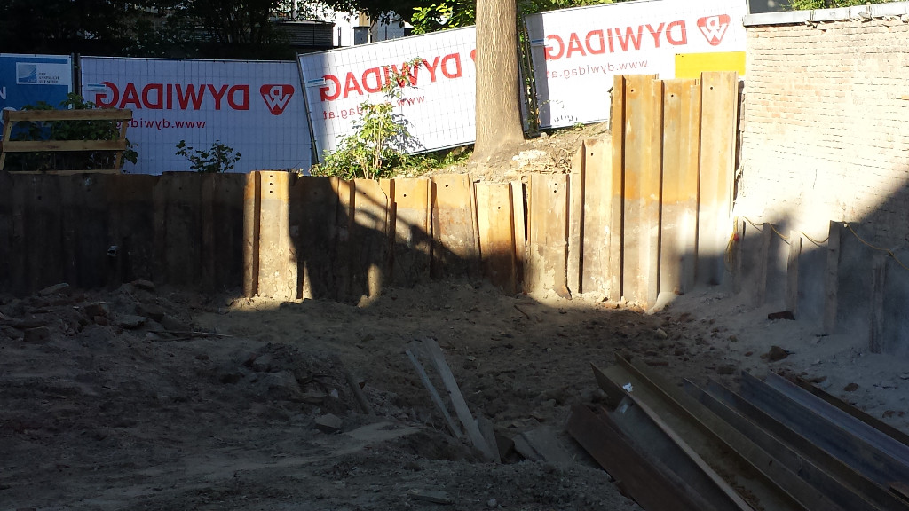 Auch bei „unserem“ Baum wurden diese Stahlträger, gefährlich nahe bei den Wurzeln, in den Boden gerammt, ich hoffe, das dabei der Baum nicht verletzt wurde, das wird wohl nur die Zeit zeigen.