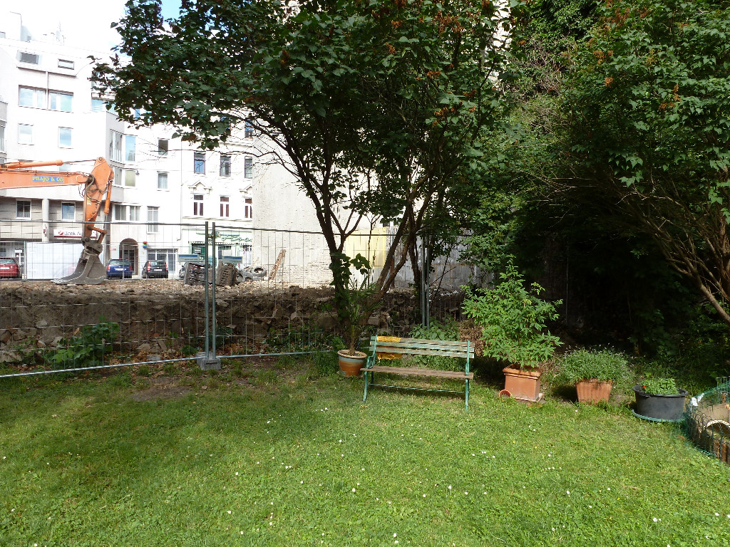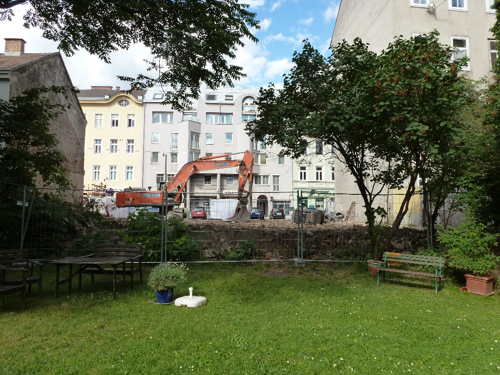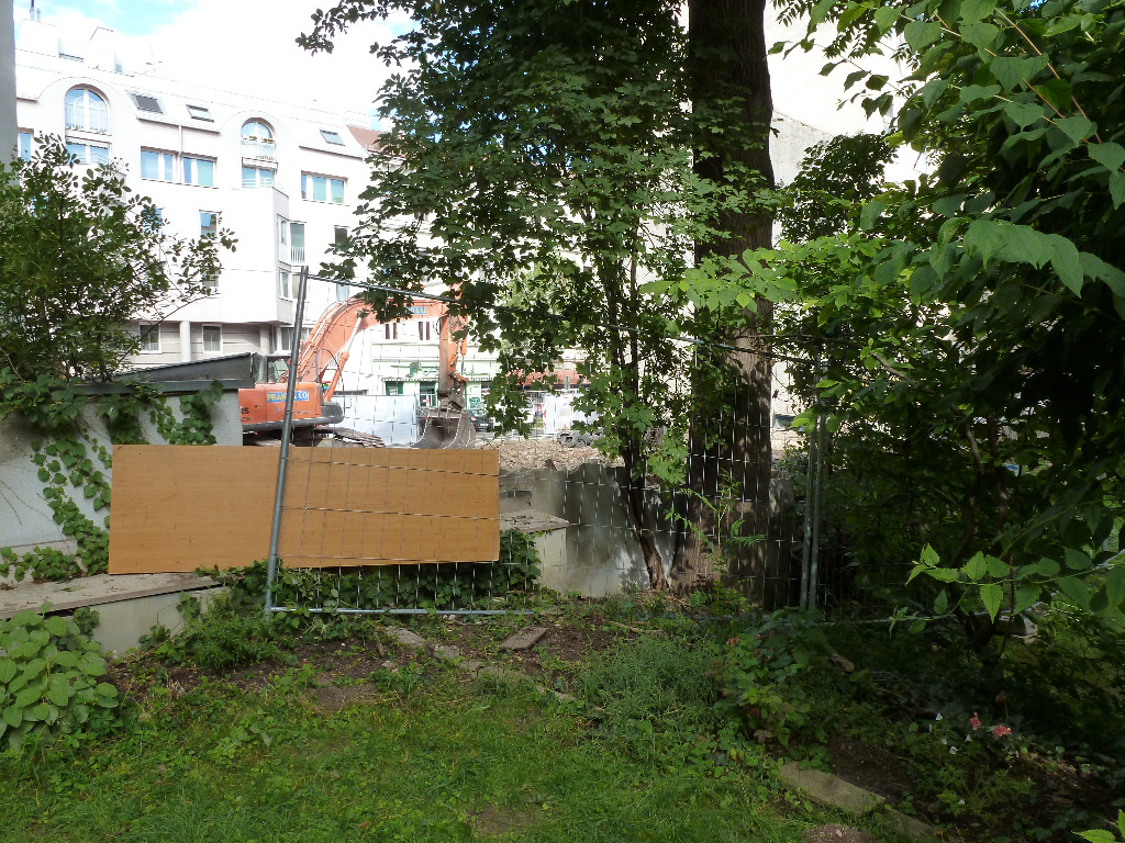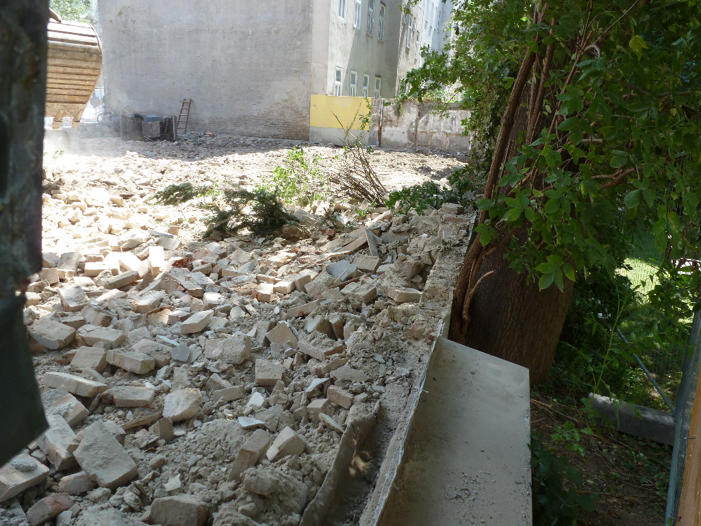 Heute in der Früh haben sie begonnen, jetzt doch mit dem Bagger das gelbe Haus zu zerlegen, aber sehr vorsichtig.