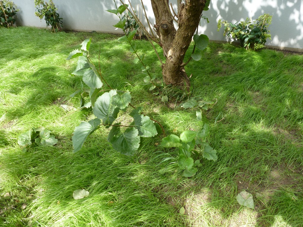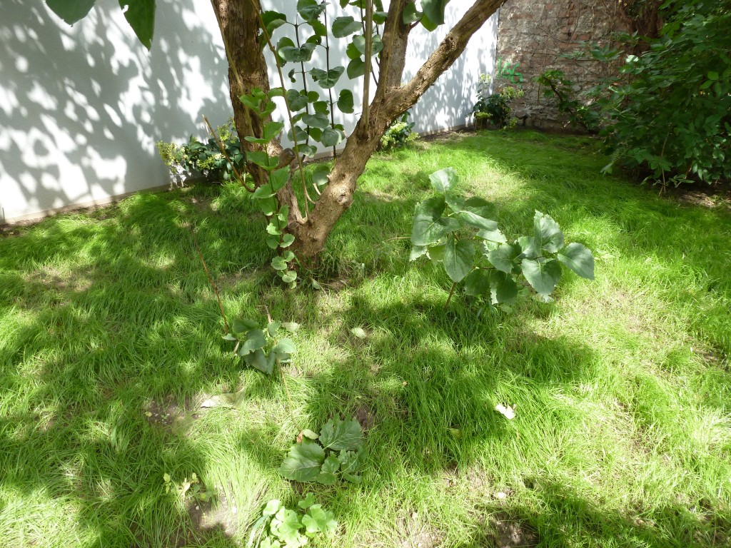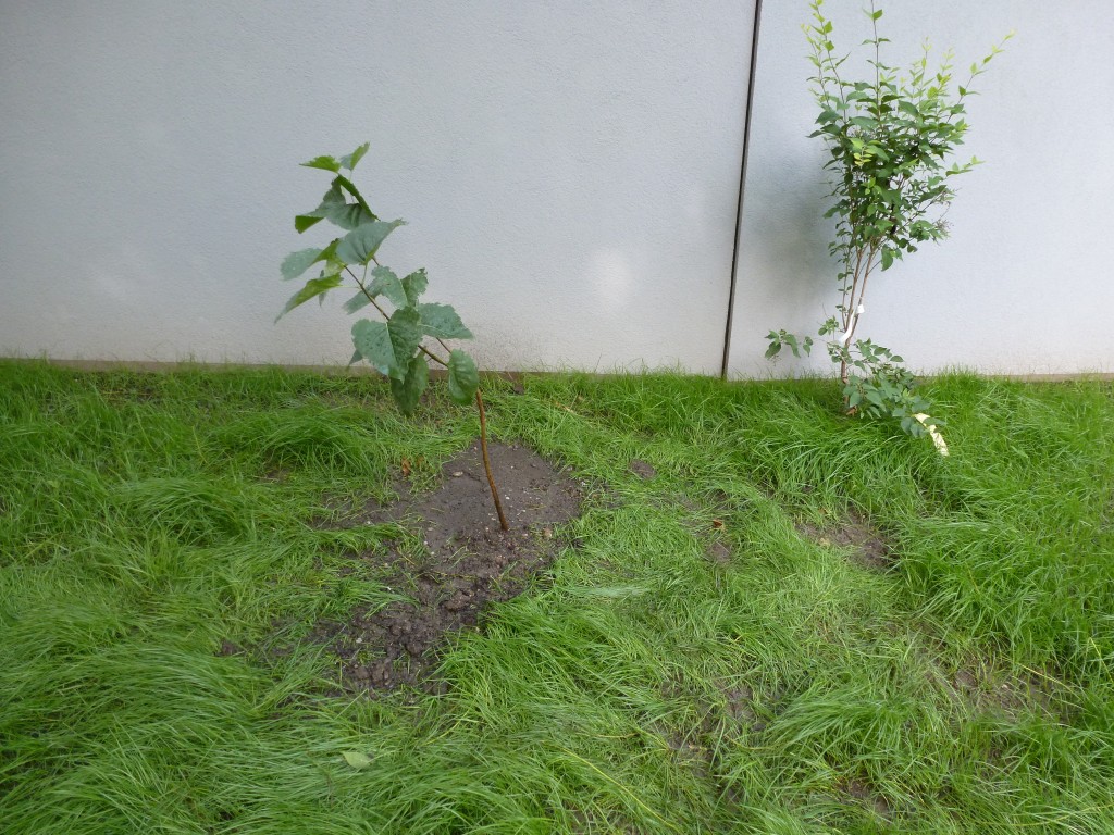 Er hat jetzt eine neue Heimat bekommen. Ich hoffe, er wächst hier, vielleicht kann man noch ein wenig Rasen sähen, damit auch hier wieder Gras wächst.