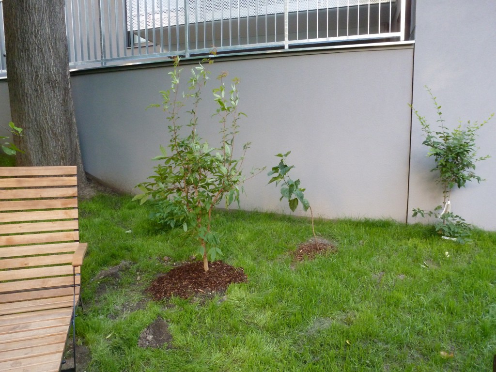 Die Töpfe von Herbert & Maria haben eine neue Heimat bekommen und ebenso der neue Baum, ich habe ihm dann noch einen Ring aus Rindenmulch verpasst, ich denke er wird sich dort wohler fühlen und jetzt stört auch nichts mehr beim Mähen.