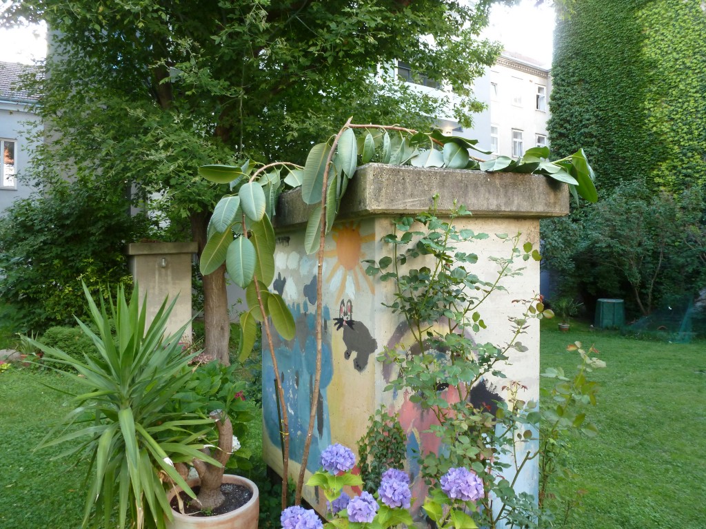 Der Wind oder auch die Schwerkraft hat zwei Töpfe umgekippt, ich habe diese jetzt wieder aufgestellt und an die Wand gestützt, aber ich denke es ist nur eine Frage der Zeit, bis die wieder umfallen.