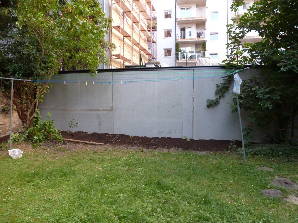 Mein Onkel, stiftet hier noch etwas Erde und ein paar Sträucher, geplant sind Himbeeren, Brombeeren und Erdbeersträucher, das verdeckt leider nicht die hässliche Wand, dafür hat man dann aber (hoffentlich) ein paar gute Früchte zum Naschen.