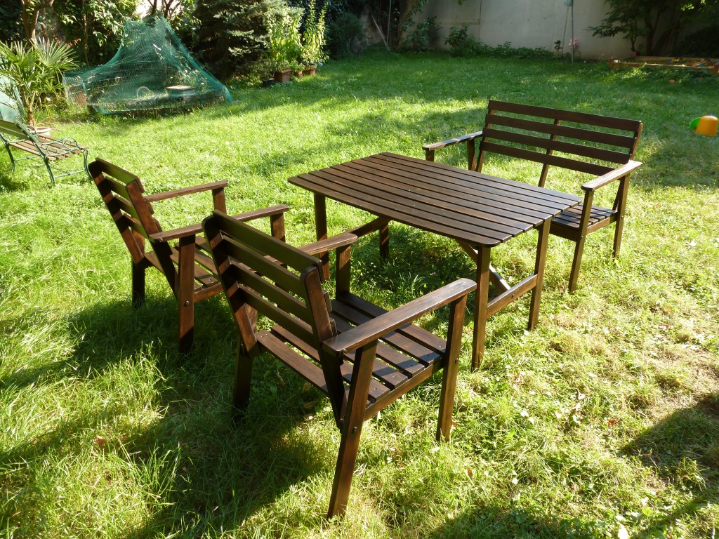 Die Gartenmöbel sind jetzt endlich fertig gestrichen und repariert. An dieser Stelle auch herzlichen Dank an Martin fürs helfen.