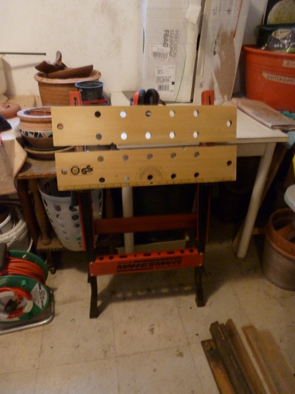 Die Schauben sind in der kleinen Box, gleich hinter der Werkbank am Tisch. Das Metallgestell müsste man auch noch vom Rost befreien und schleifen, an einigen Stellen wird man das wohl mit einer Feile tun müssen, da schon sehr viel Rost und alter Lack vorhanden ist und die Stellen teilweise sehr unzugänglich sind.