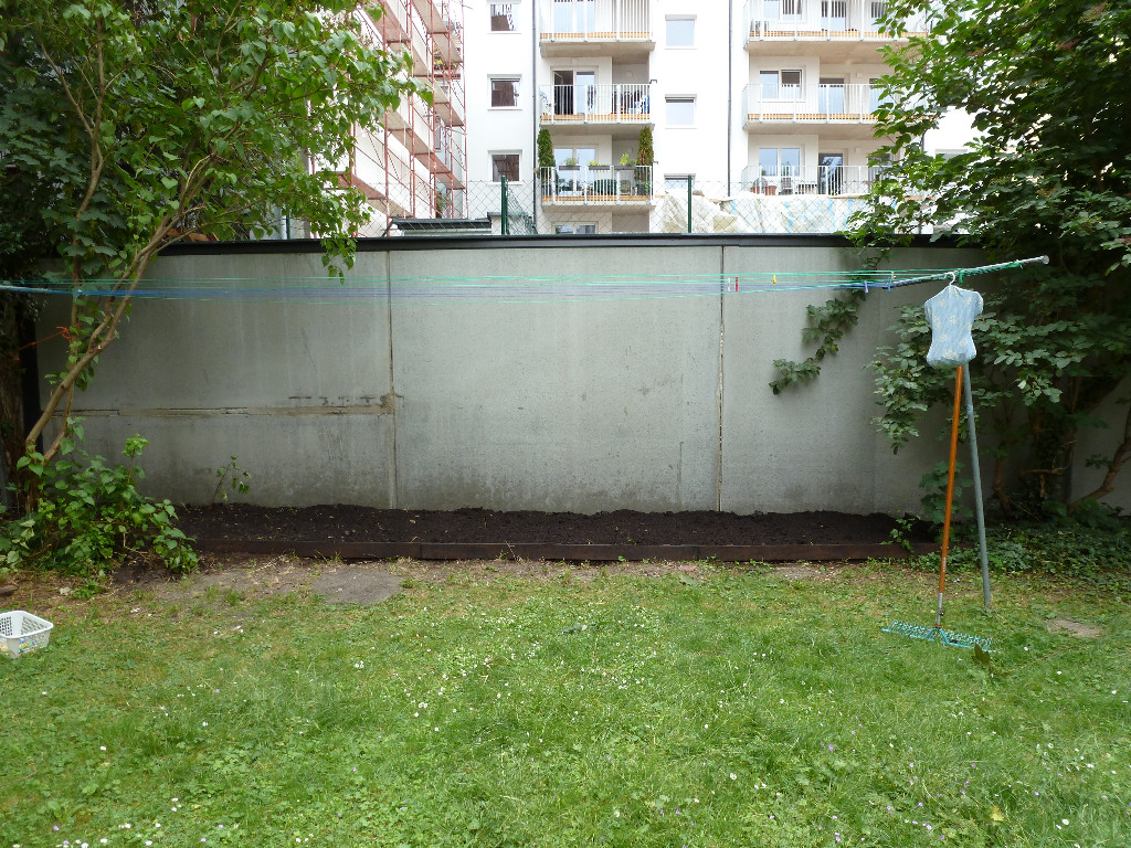 ein paar Sträucher (Himbeeren und Brombeeren) zu pflanzen, damit das nicht so kahl ist, sollte jemand da etwas dagegen haben, mir das bitte rechtzeitig zu sagen. Aber ich denke da hat niemand etwas dagegen, erstens sieht das hübscher als als jetzt und wenn die Sträucher dann Früchte tragen, gibt es sogar etwas zu naschen und die nicht so schöne Mauer wird auch ein wenig verdeckt.