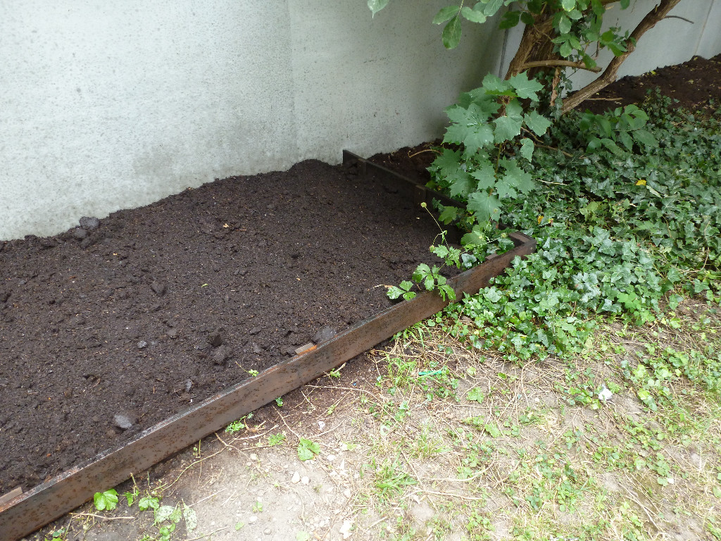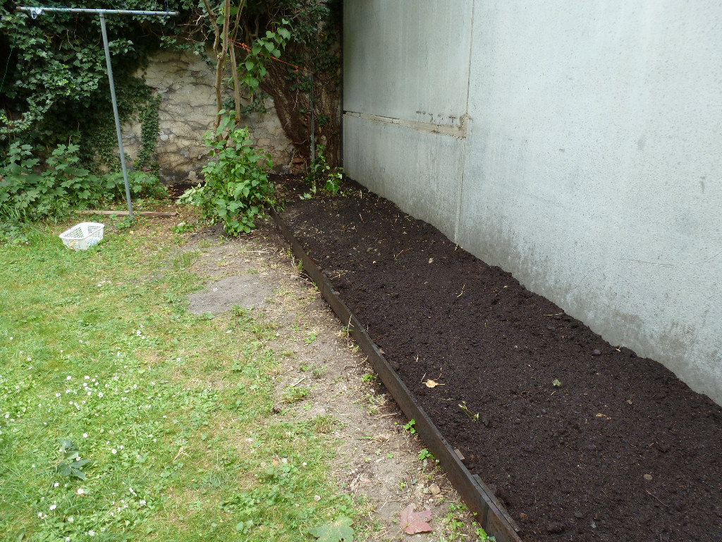 Hier die fertig aufgebaute Konstruktion, ein wenig Erde fehlt uns noch.