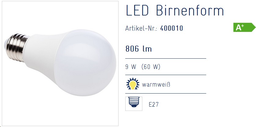 Diese Lampe sollte jetzt eine Weile halten und sie ist auch um einiges heller, wie eine 40W „normale“ Lampe und ihr machen die Temperaturschwankungen nichts aus.