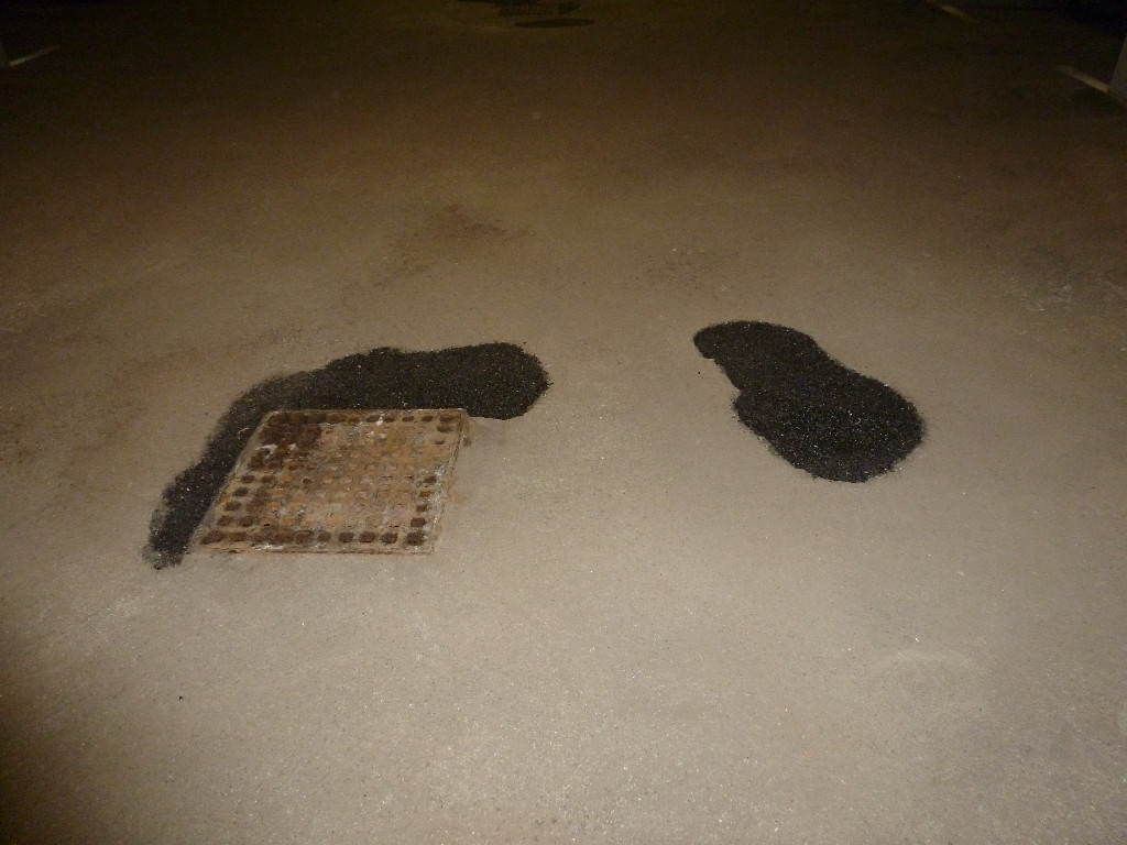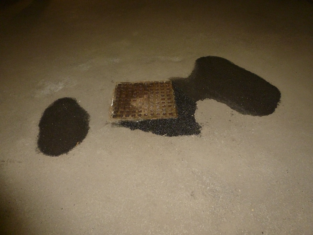 Offenbar hat die HV jetzt doch eine Reparatur des Bodens in der Garage veranlasst und das ist nicht nur mit Sand aufgefüllt worden, sondern wie es aussieht mit Asphalt. Ich habe gar nicht mit bekommen, wann die das gemacht haben.